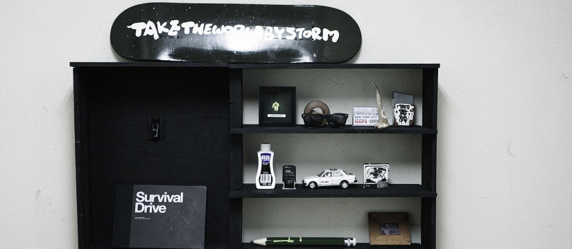 築40年以上の月日が流れているビルにて廃材とされた家具類をカスタムし再生したものも展示、販売。「いらないものなどなにもない」をスローガンに。