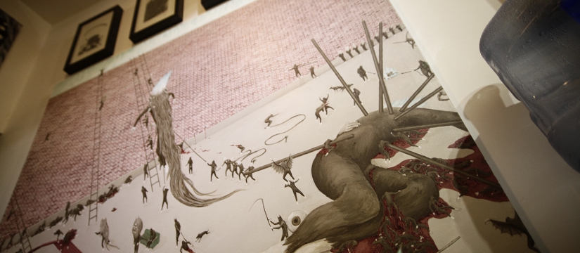 おそらく以前の僕が描こうとしていたものはグラフィックであり、装飾であり見て美しいもの、空間にあって楽しいものでした。そして今、描こうとしているものは人間の内面に関するものです。それは”人間とはなにか?”であるとか、”生きるとは?”、”世界とはなにか?”という問いかけです。